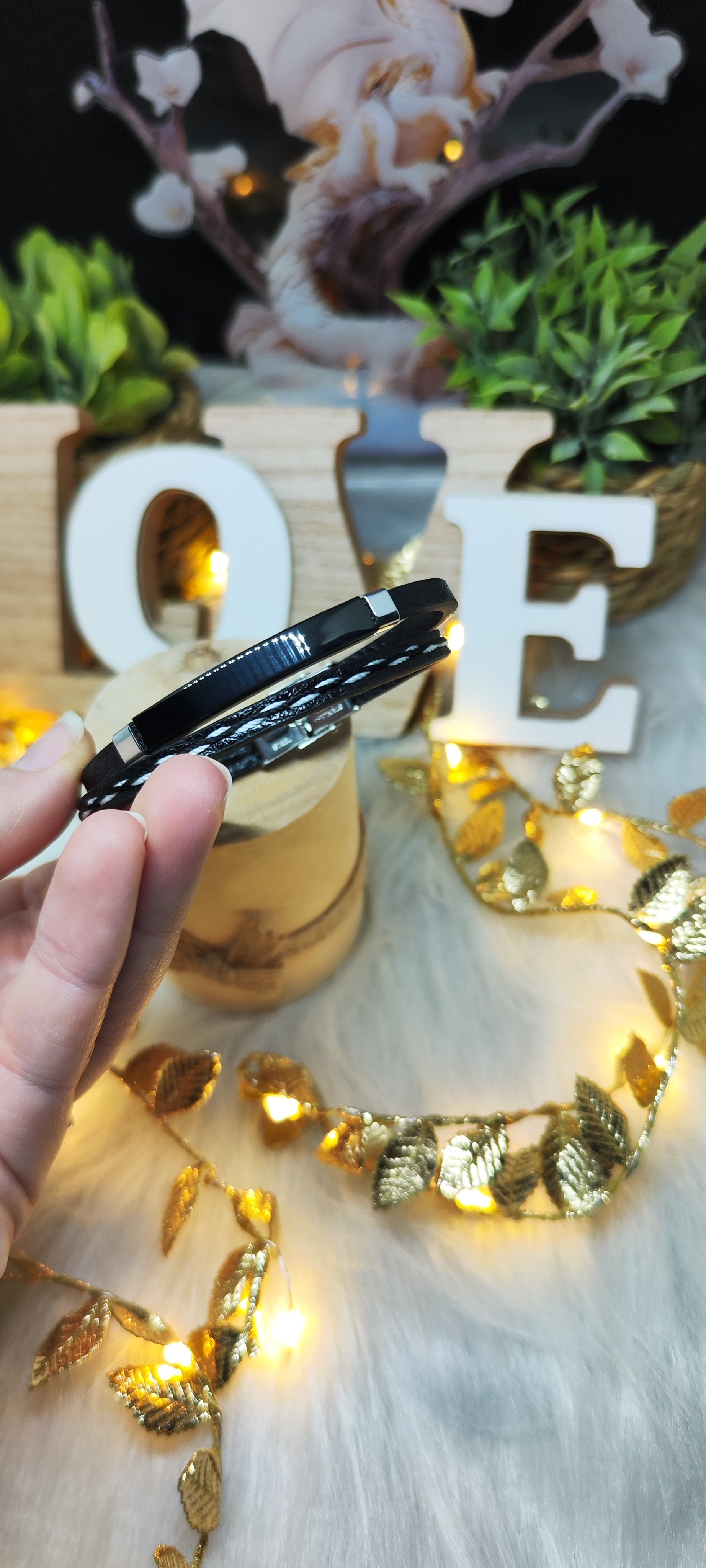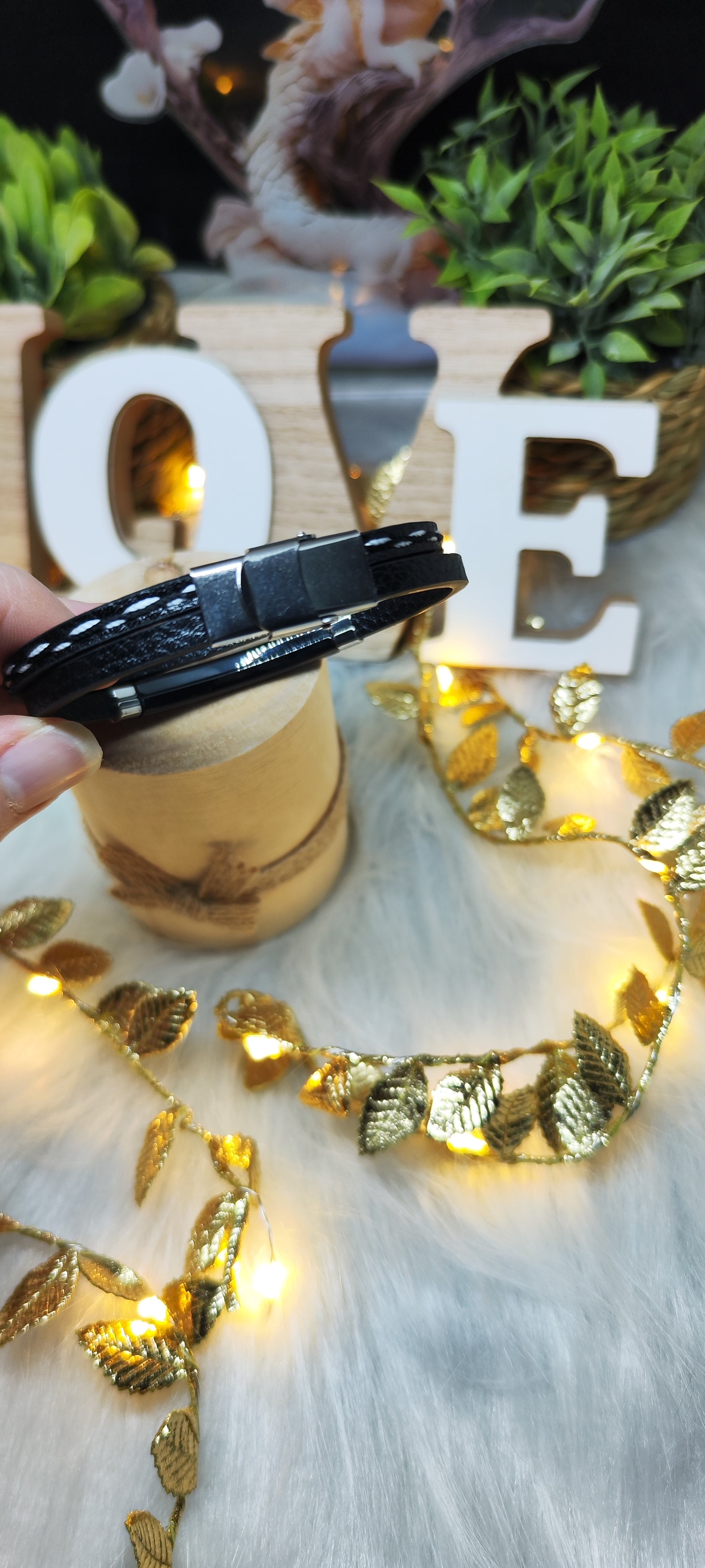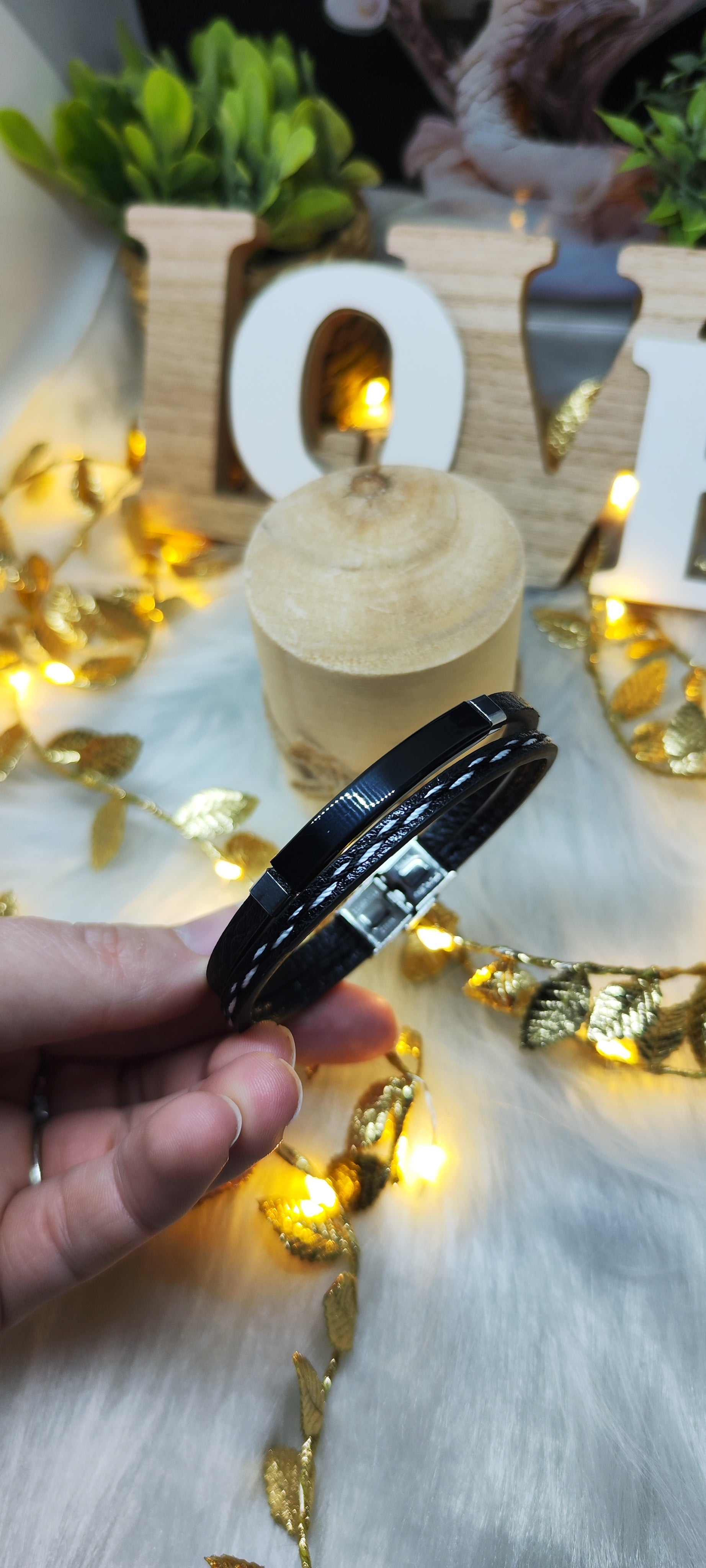 Bracelet pour homme de très bonne qualité fermeture facile en acier inoxydable et simili cuir
