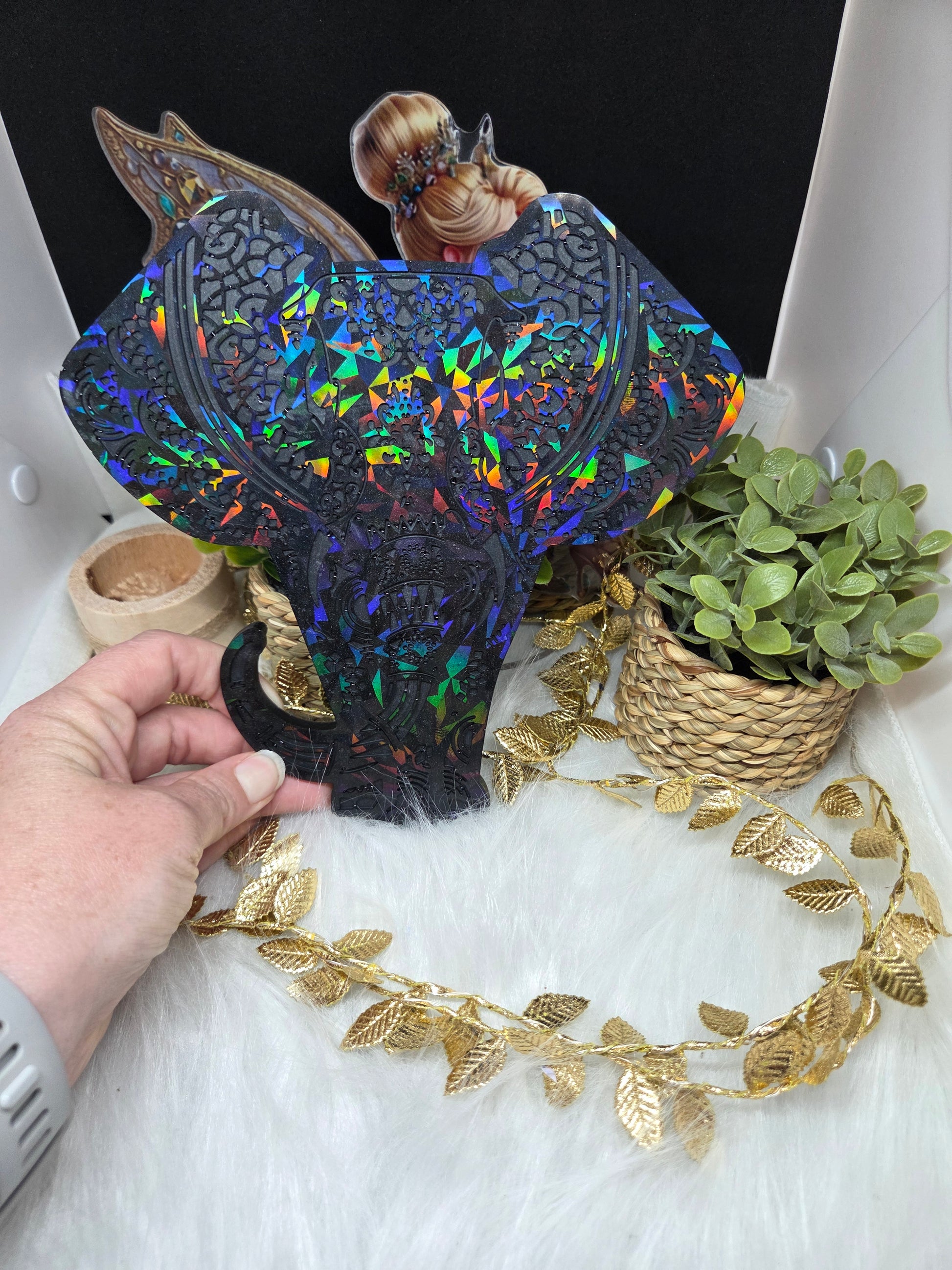 Apportez une touche de poésie et de tendresse à votre intérieur avec notre décoration murale représentant un éléphant holographique.
