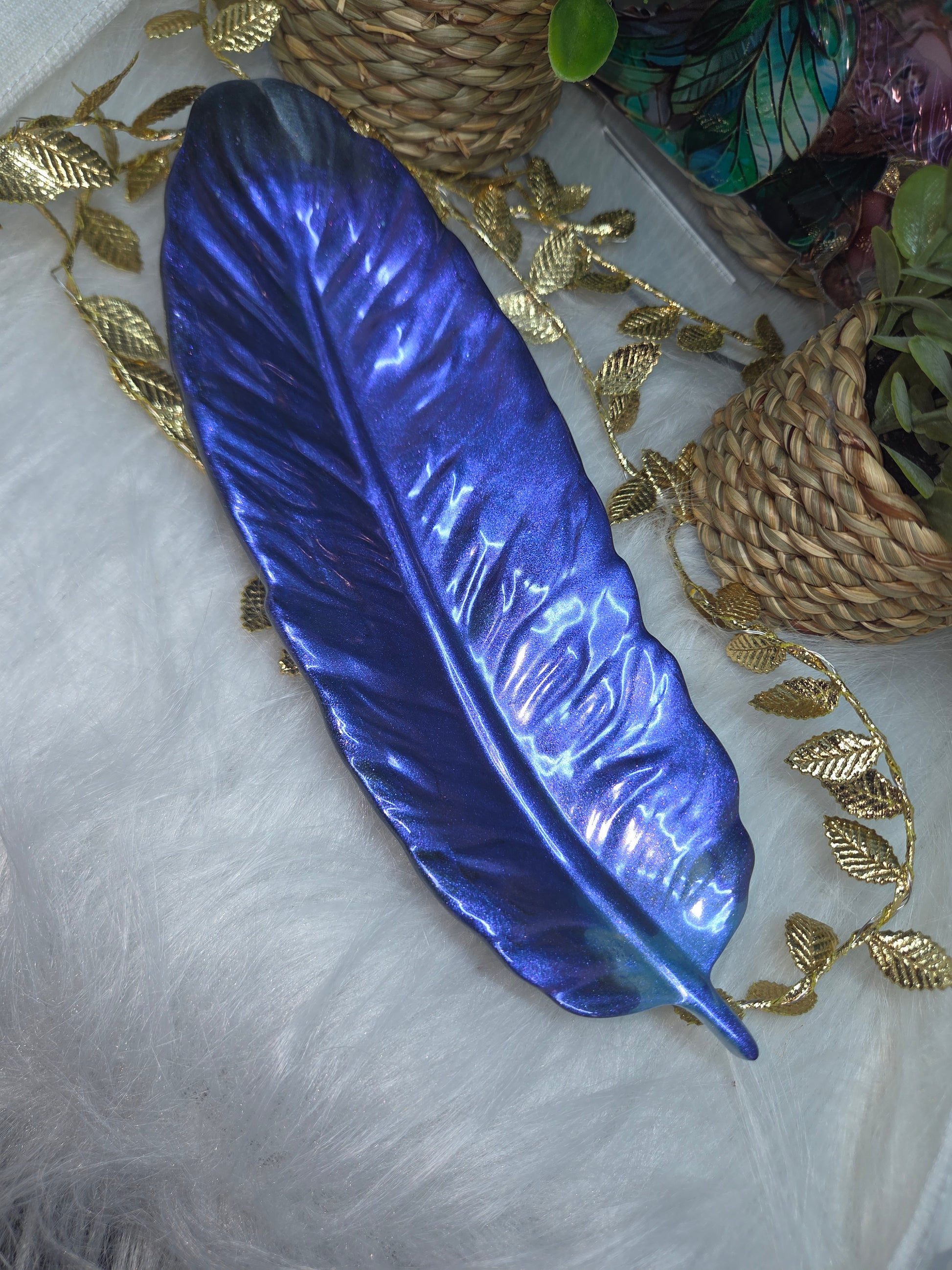 Ajoutez une touche de magie et d’élégance à votre déco avec ce vide-poche en résine aux reflets bleu-violet irisés. Sa forme délicate de feuille stylisée (ou de plume, selon l’œil de l’artiste 👀) en fait une pièce à la fois utile et visuellement captivante.