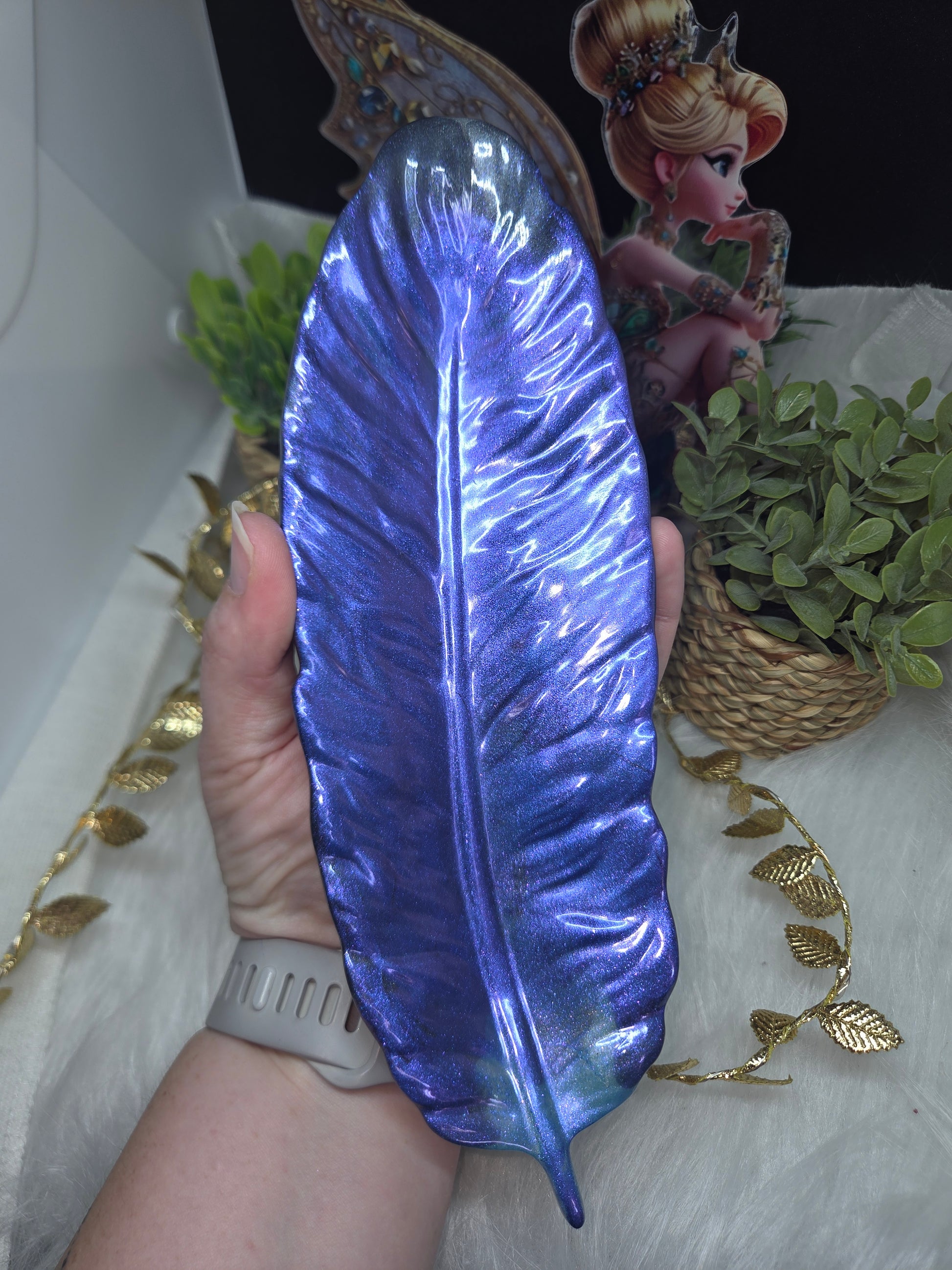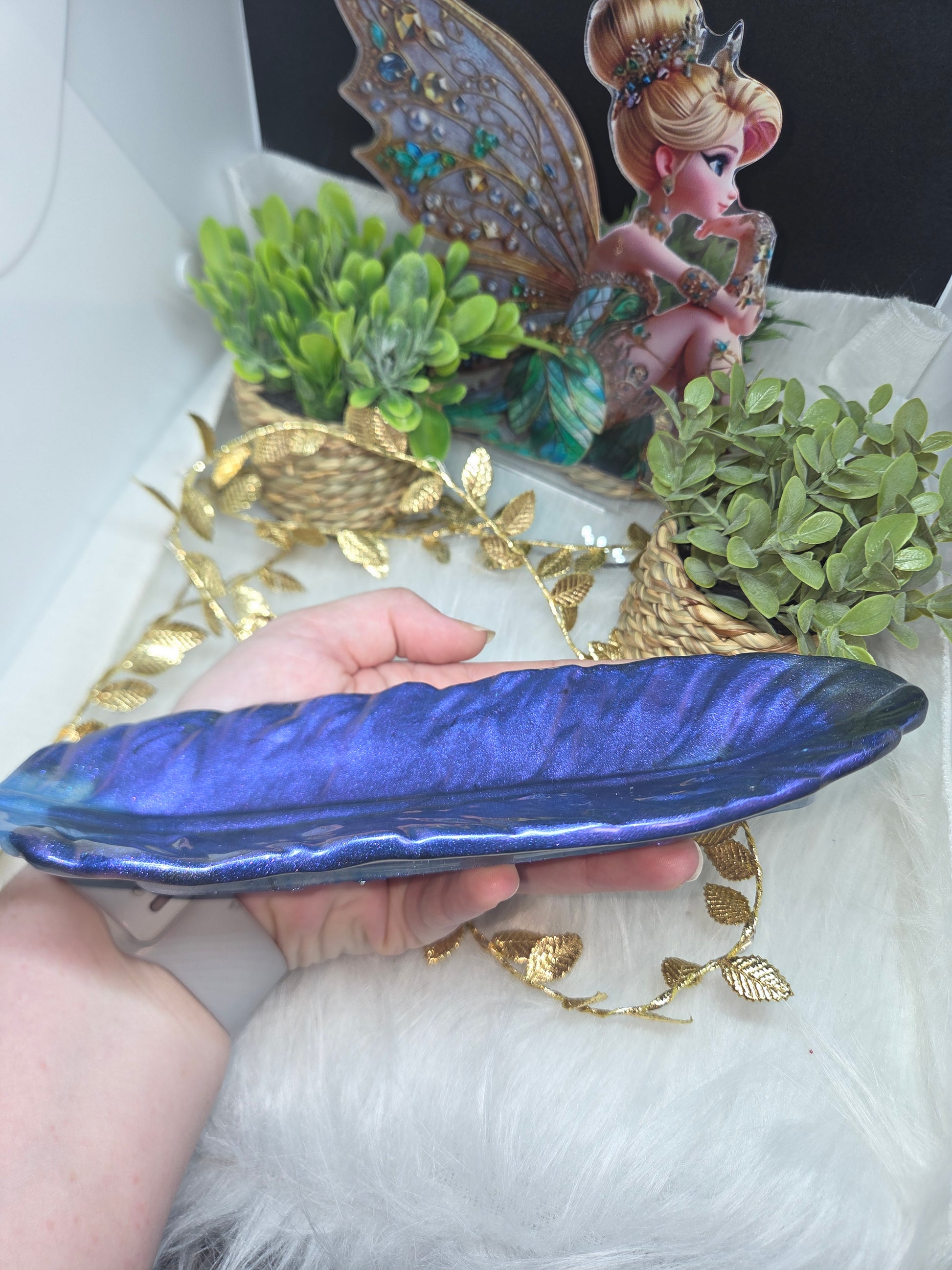Vide-poche en résine – Feuille nacrée bleu-violet ✨🍃